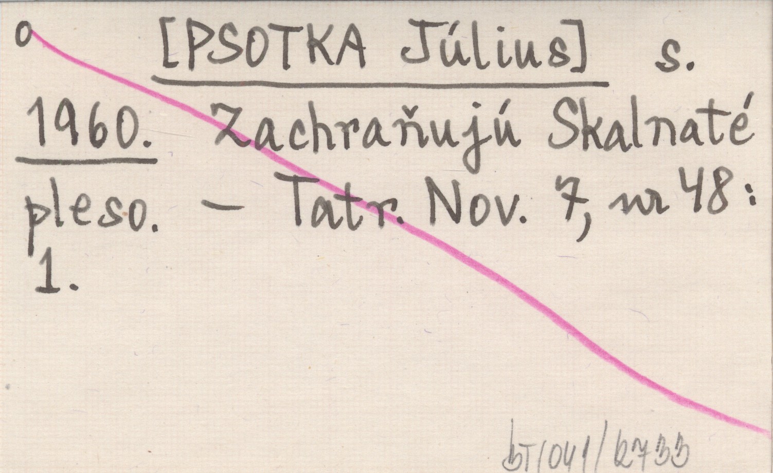 s. [PSOTKA Július] 1960 Zachraňujú Skalnaté pleso.