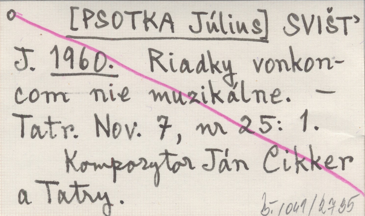 [PSOTKA Július] SVIŠŤ, J. ; 1960 Riadky vonkoncom nie muzikálne.