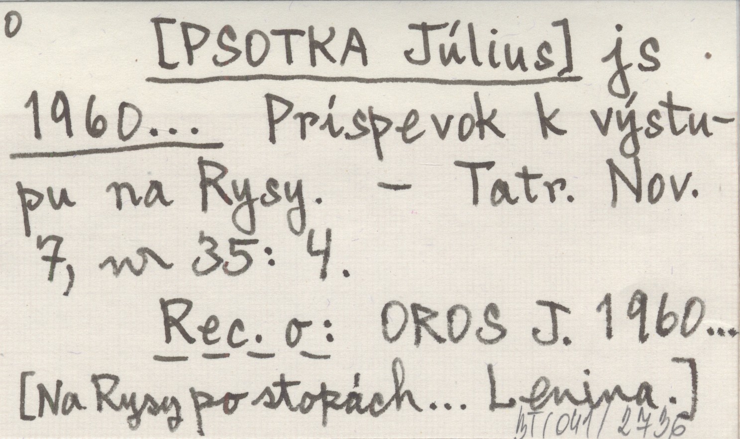 js [PSOTKA Július] 1960... Príspevok k výstupu na Rysy.