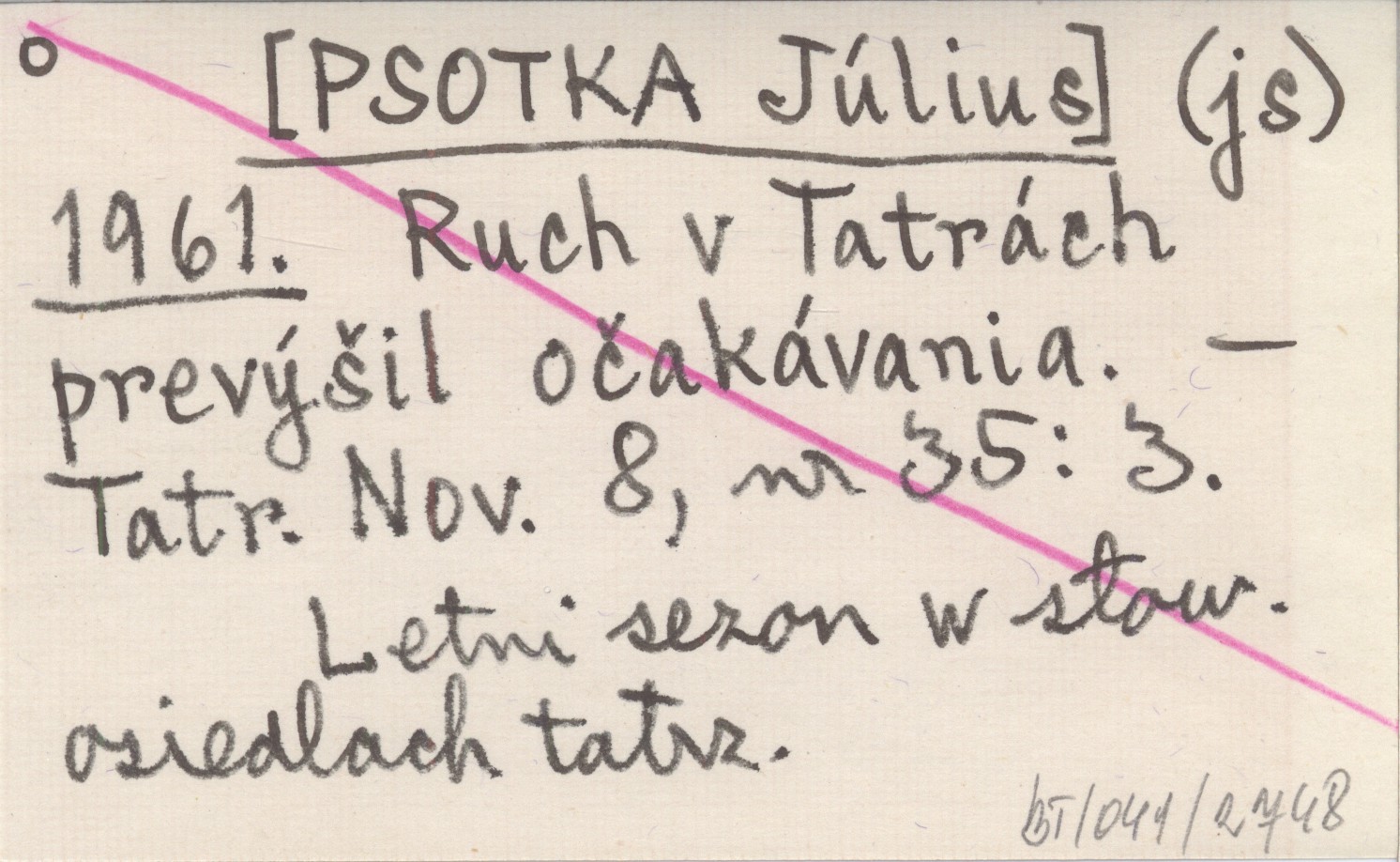 (js) [PSOTKA Július] 1961 Ruch v Tatrách prevýšil očakávania.
