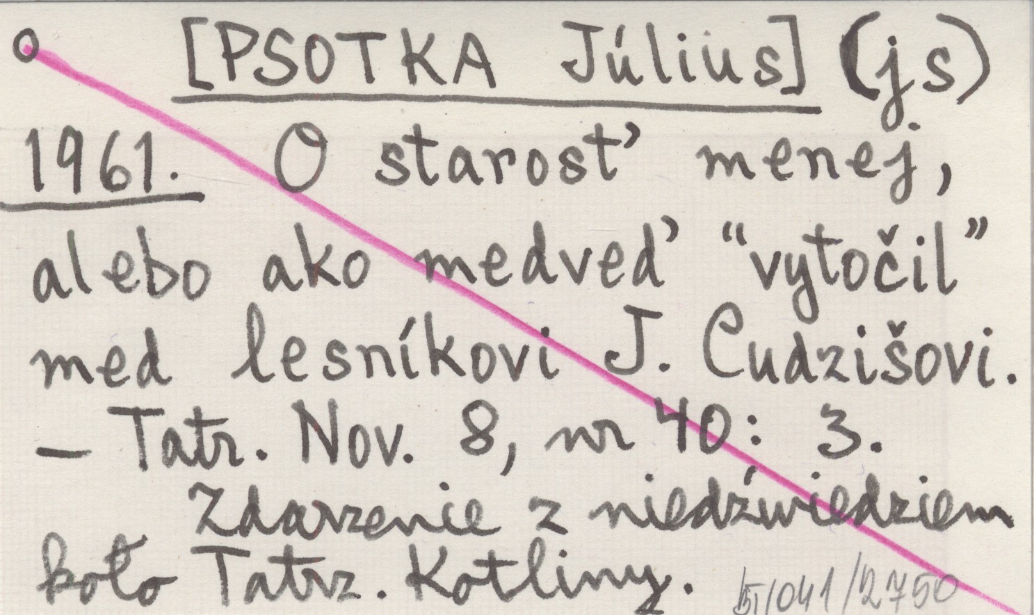 (js) [PSOTKA Július] 1961 O starosť menej, alebo ako medveď "vytočil" med lesníkovi J. Cudzišovi.