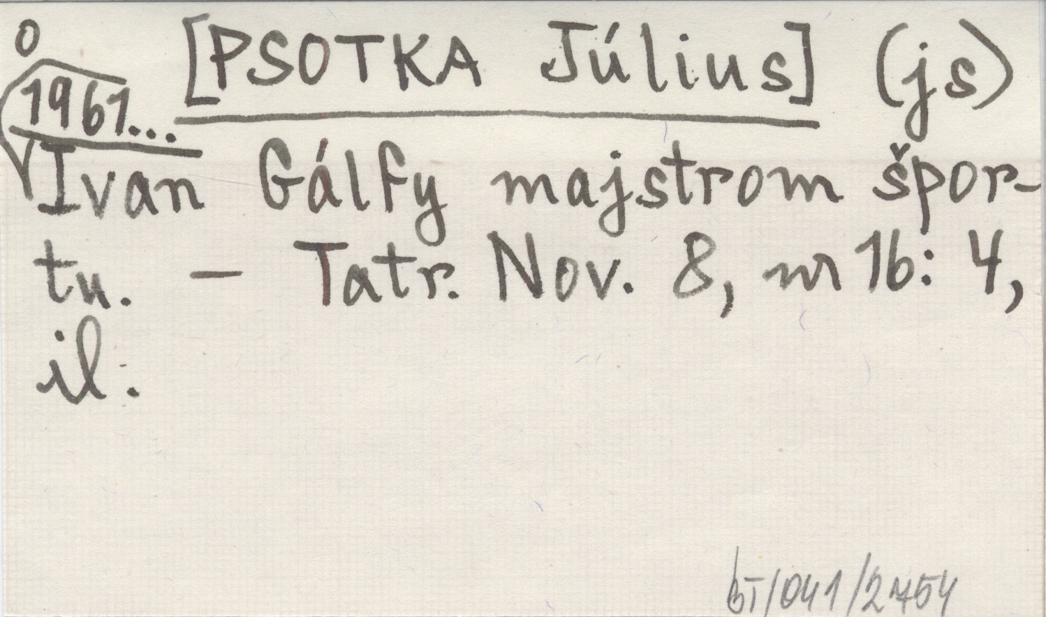 (js) [PSOTKA Július] 1961... Ivan Gálfy majstrom športu.