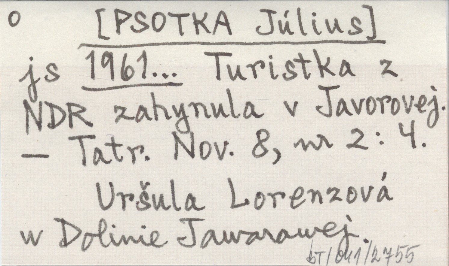 js [PSOTKA Július] 1961... Turistka z NDR zahynula v Javorovej.
