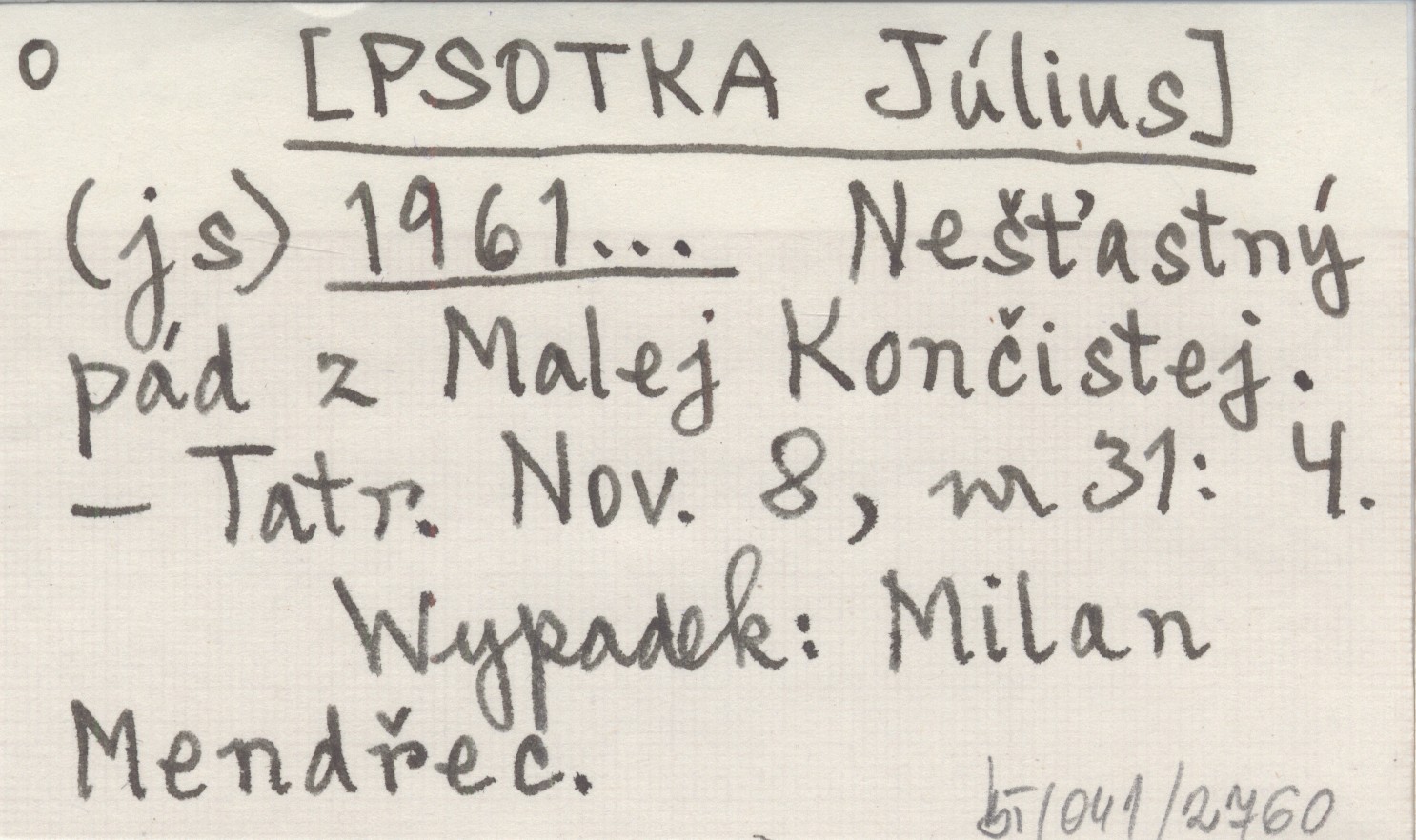 (js) [PSOTKA Július] 1961... Nešťastný pád z Malej Končistej.
