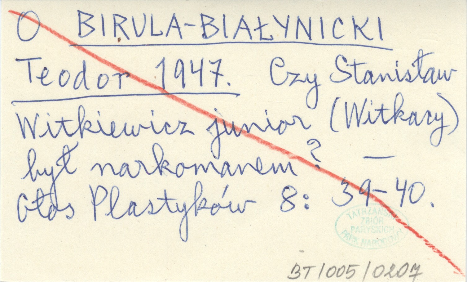 BIRULA-BIAŁYNICKI Teodor 1947 Czy Stanisław Witkiewicz junior (Witkacy) był narkomanem?