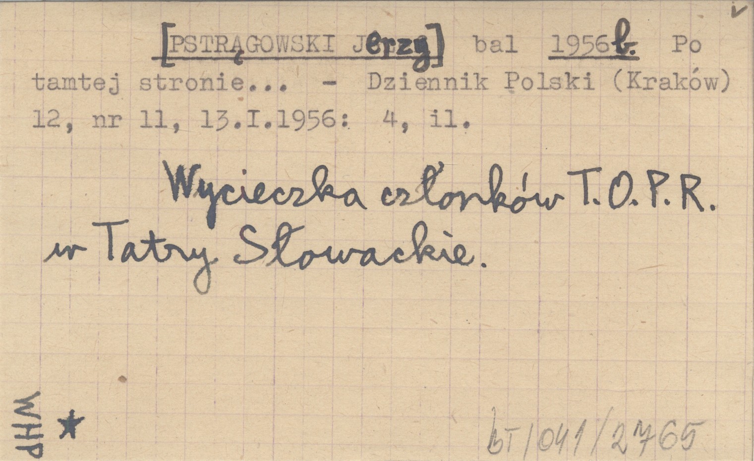 Dziennik Polski (Kraków) , 12, nr 11 (13 I 1956): 4, il. Wycieczka członków T.O.P.R. w Tatry Słowackie.