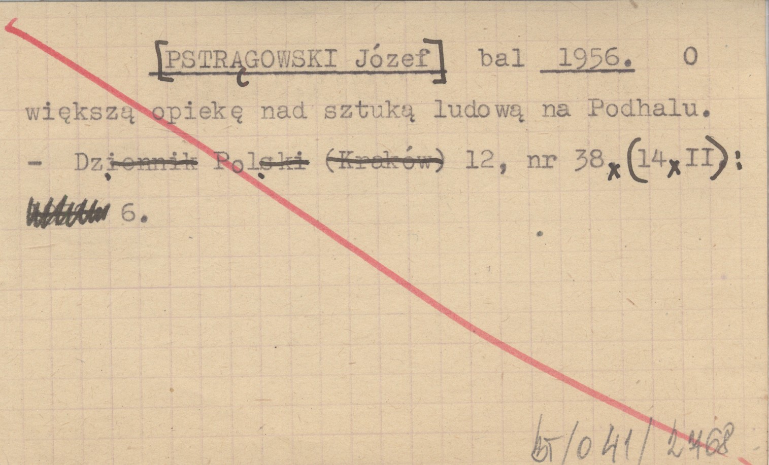 bal [PSTRĄGOWSKI Józef] 1956 O większą opiekę nad sztuką ludową na Podhalu.