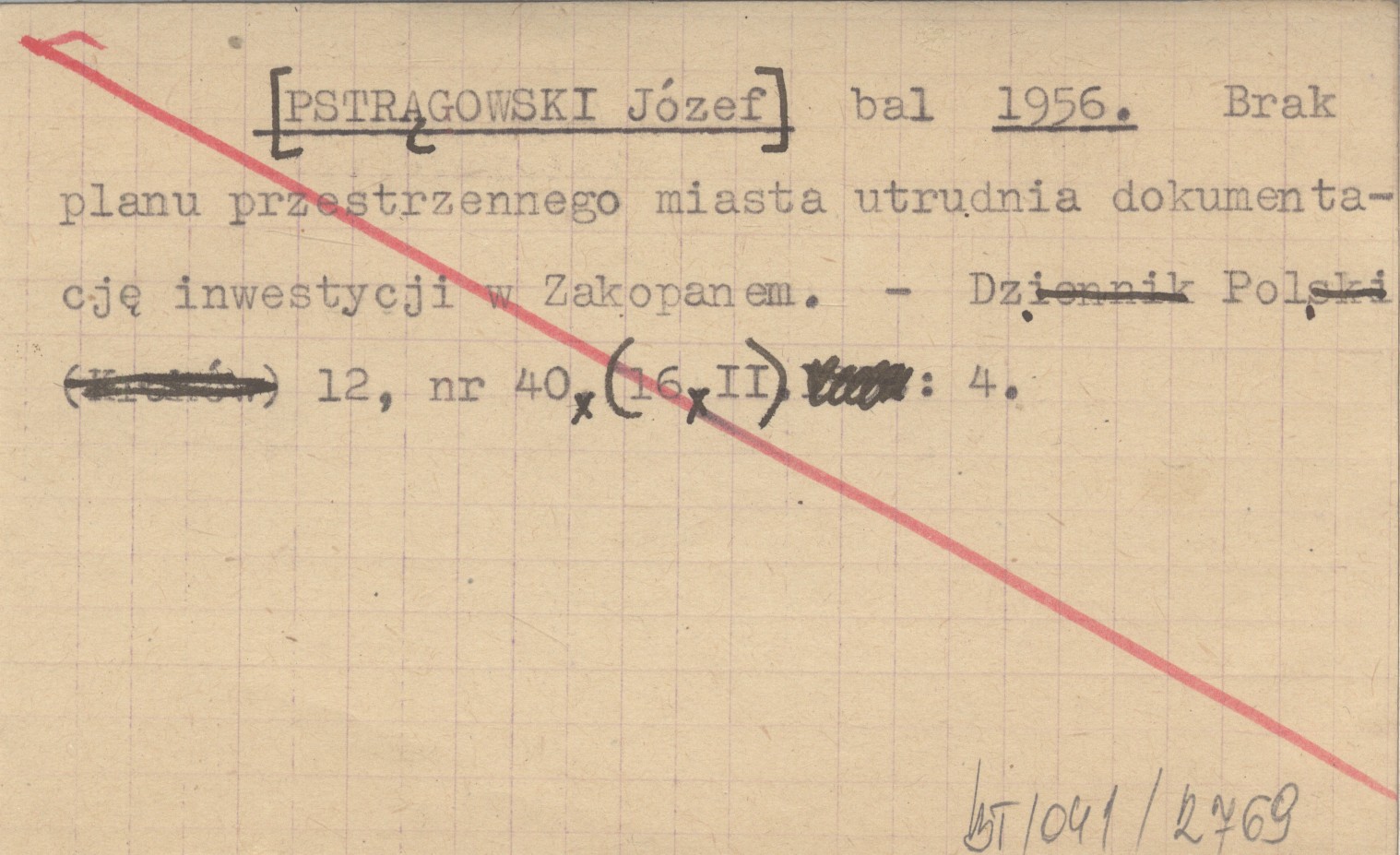 bal [PSTRĄGOWSKI Józef] 1956 Brak planu przestrzennego miasta utrudnia dokumentację inwestycji w Zakopanem.