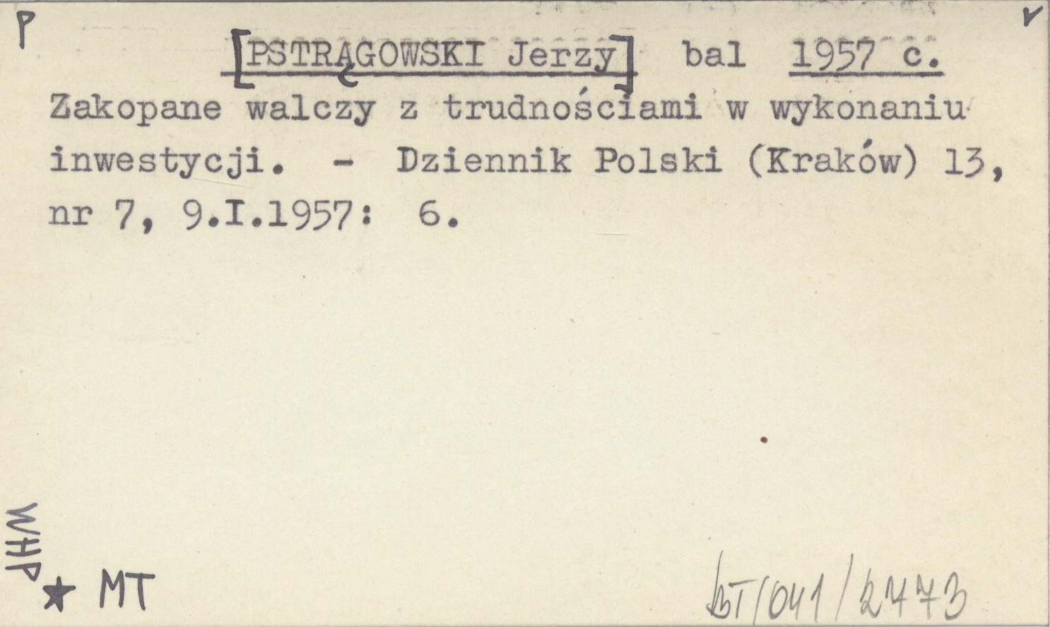 bal [PSTRĄGOWSKI Jerzy] 1957 c Zakopane walczy z trudnościami w wykonaniu inwestycji.