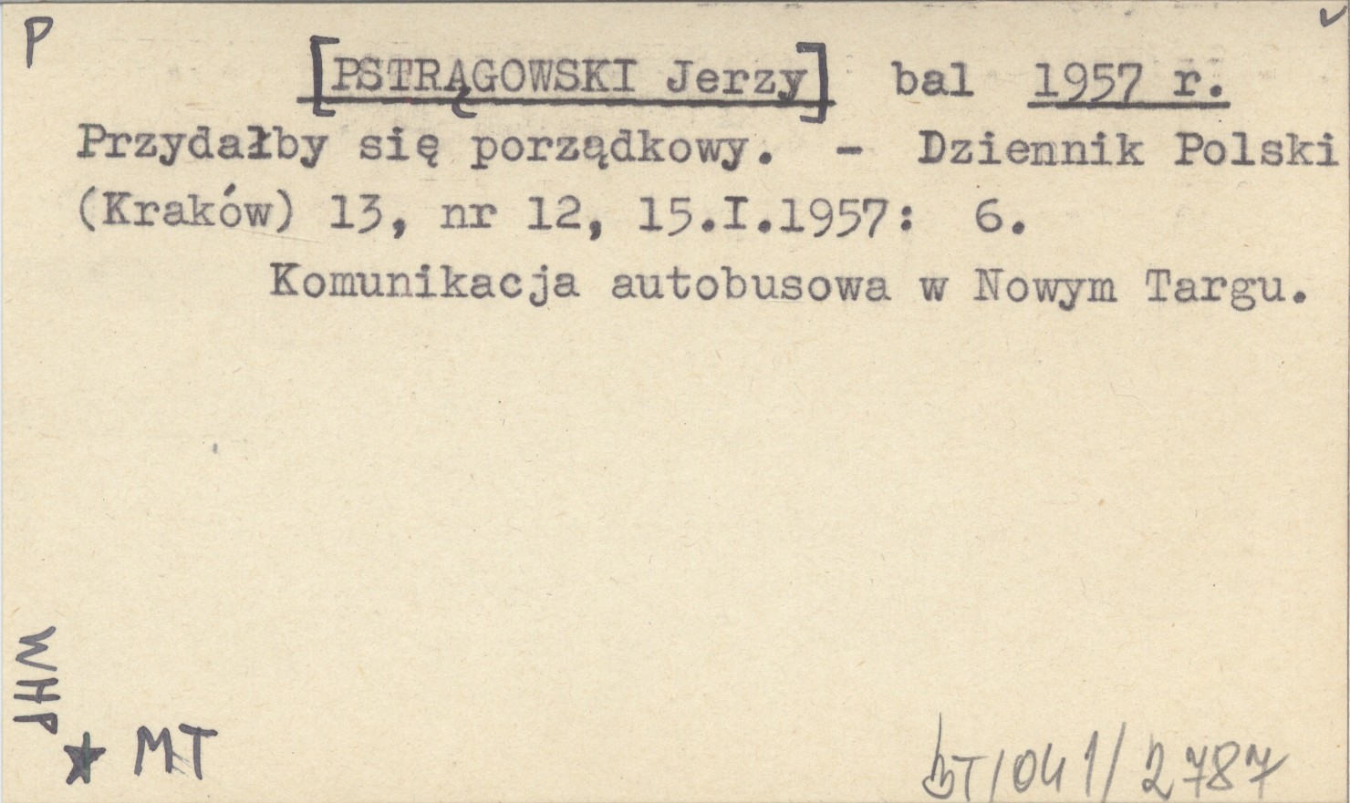 Dziennik Polski (Kraków) , 13, nr 12 (15 I 1957): 6. Komunikacja autobusowa w Nowym Targu.