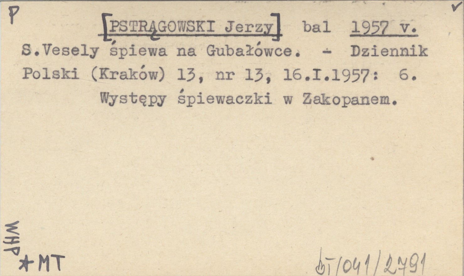 bal [PSTRĄGOWSKI Jerzy] 1957 v S. Vesely śpiewa na Gubałówce.