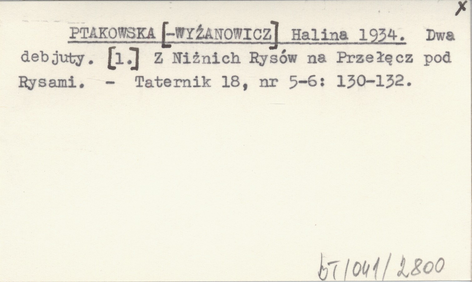 PTAKOWSKA[-WYŻANOWICZ] Halina 1934 Dwa debjuty. [1.] Z Niżnich Rysów na Przełęcz pod Rysami.
