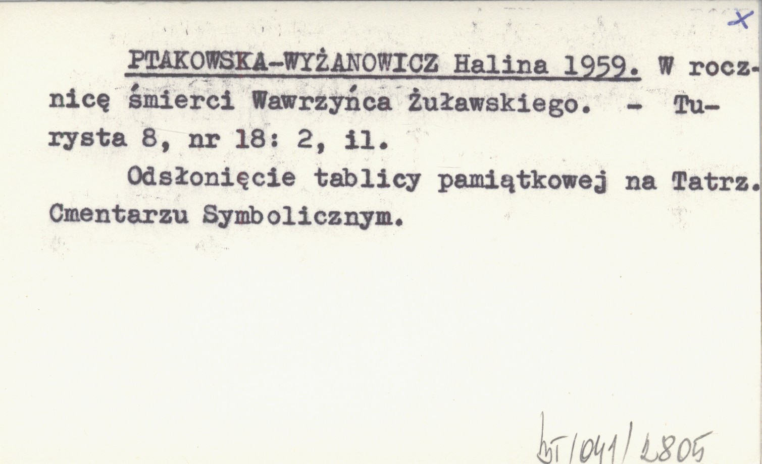 PTAKOWSKA-WYŻANOWICZ Halina 1959 W rocznicę śmierci Wawrzyńca Żuławskiego.