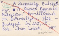 RED: Loisch, János. ; A Szepesség Emlékkonyv. A Szepesi Egyesület Budapesten" Fennállásának 50. Évfordulójára. 1926