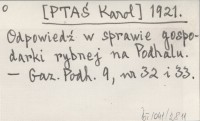 [PTAŚ Karol] 1921 Odpowiedź w sprawie gospodarki rybnej na Podhalu.