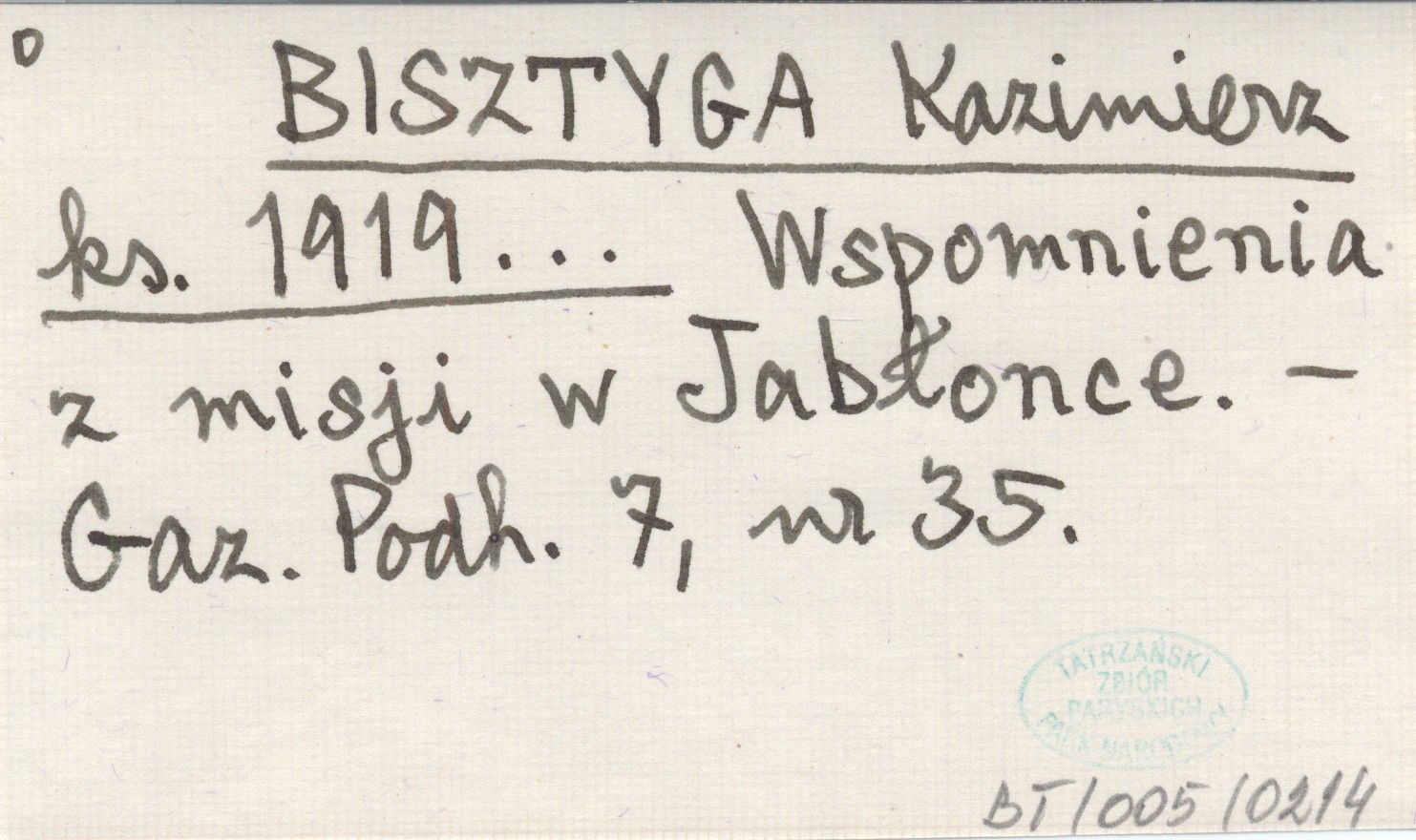 BISZTYGA Kazimierz ks. 1919... Wspomnienia z misji w Jabłonce.