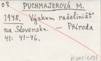 PUCHMAJEROVÁ M. 1948 Výzkum rašelinišť na Slovensku.