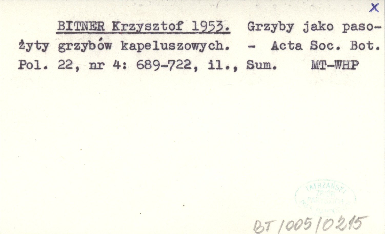 BITNER Krzysztof 1953 Grzyby jako pasożyty grzybów kapeluszowych.