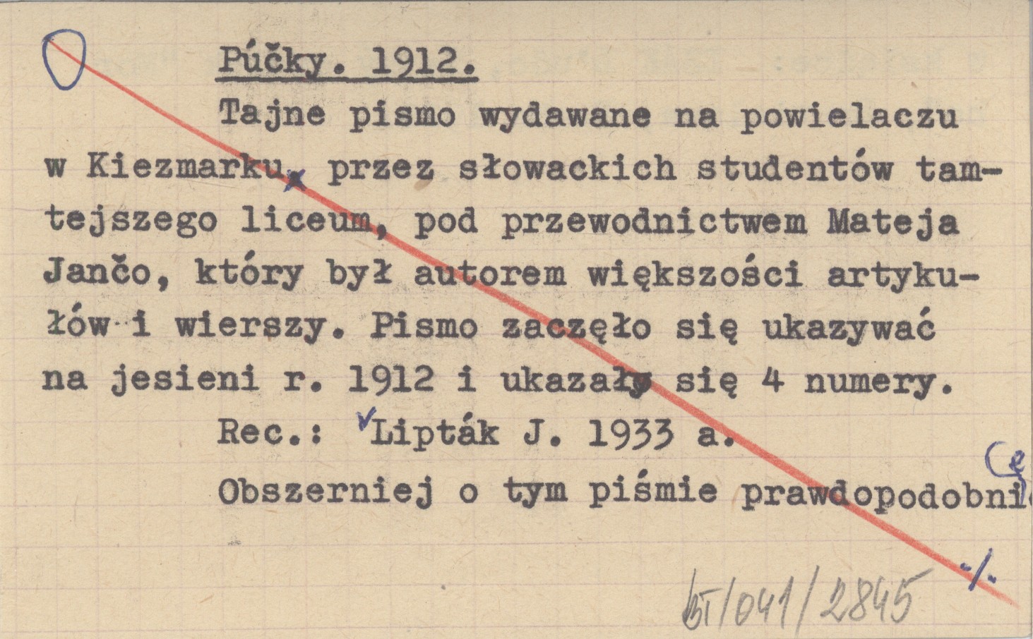 Púčky, Tajne pismo wydawane na powielaczu w Kiezmarku przez słowackich studentów tamtejszego liceum, pod przewodnictwem Mateja Jančo, który był autorem większości artykułów i wierszy. Pismo zaczęło się ukazywać na jesieni r. 1912 i ukazały się 4 numery. Obszerniej o tym piśmie prawdopodobnie w książce: IZÁK Ľudo, Tajný spolok "Mor ho", Bratislava, Praha 1928. REC: LIPTÁK J. 1933 a
