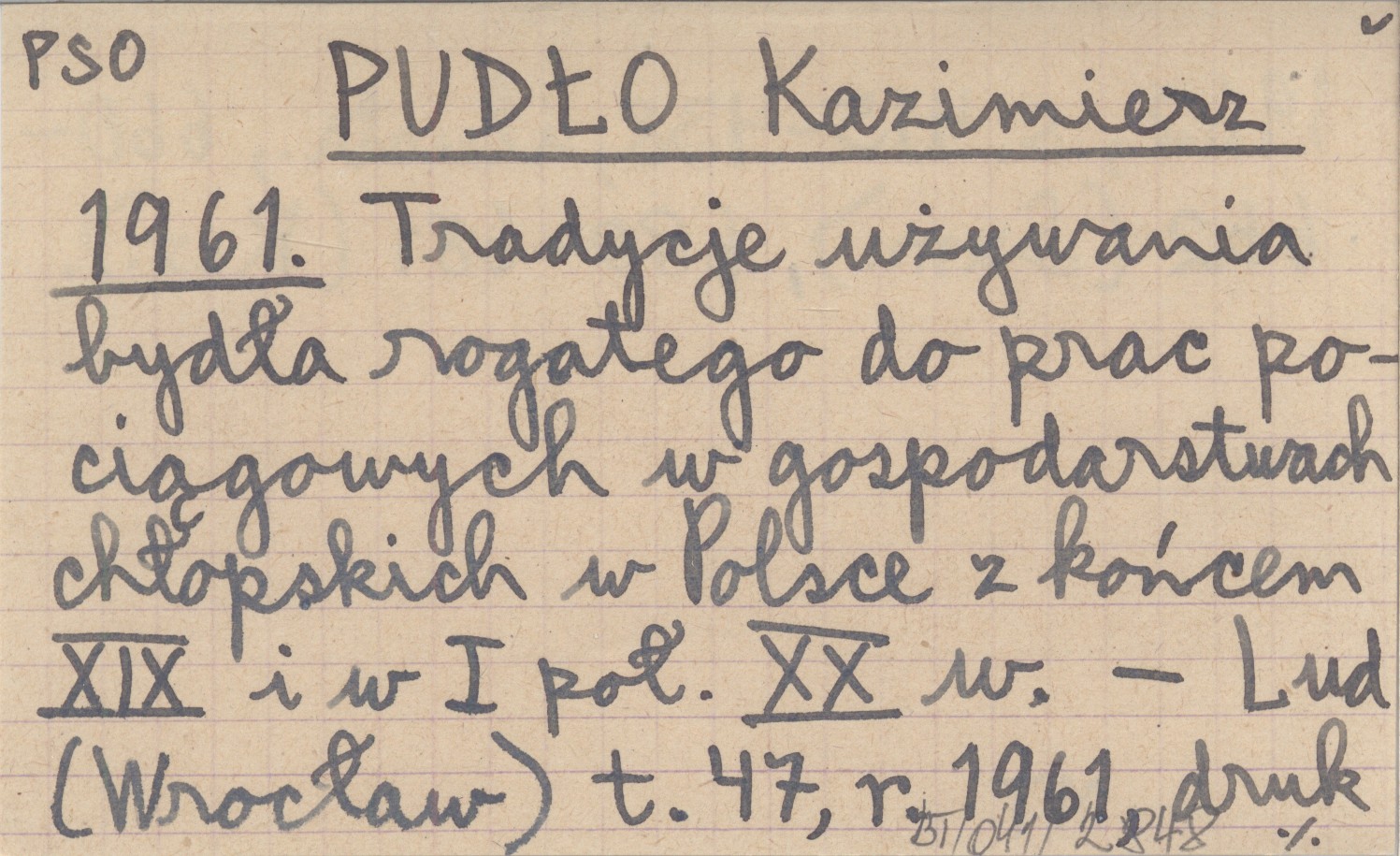 PUDŁO Kazimierz 1961 Tradycje używania bydła rogatego do prac pociągowych w gospodarstwach chłopskich w Polsce z końcem XIX i w I poł. XX w.
