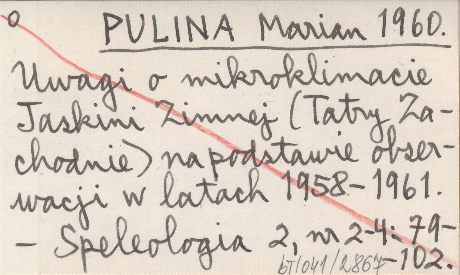 PULINA Marian 1960 Uwagi o mikroklimacie Jaskini Zimnej (Tatry Zachodnie) na podstawie obserwacji w latach 1958-1961.