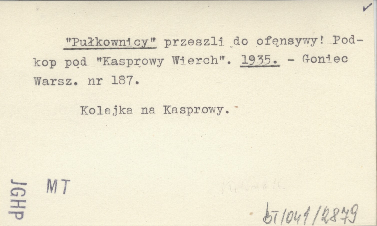 "Pułkownicy" przeszli do ofensywy! Podkop pod "Kasprowy Wierch". 1935
