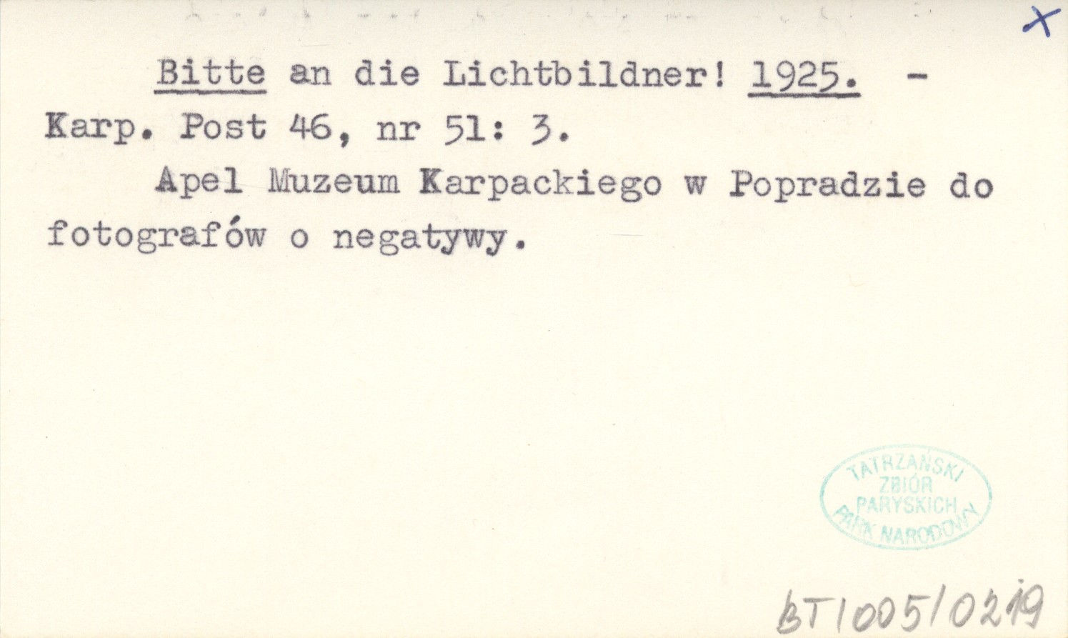 Karpathen-Post, 46, nr 51: 3. Apel Muzeum Karpackiego w Popradzie do fotografów o negatywy.