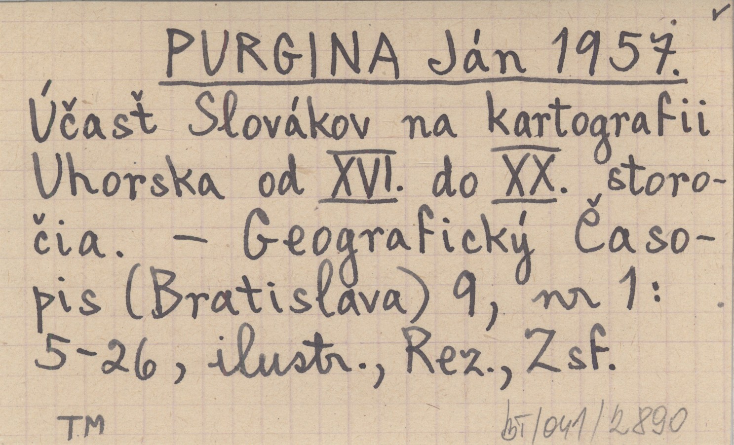PURGINA Ján 1957 Účasť Slovákov na kartografii Uhorska od XVI. do XX. storočia.