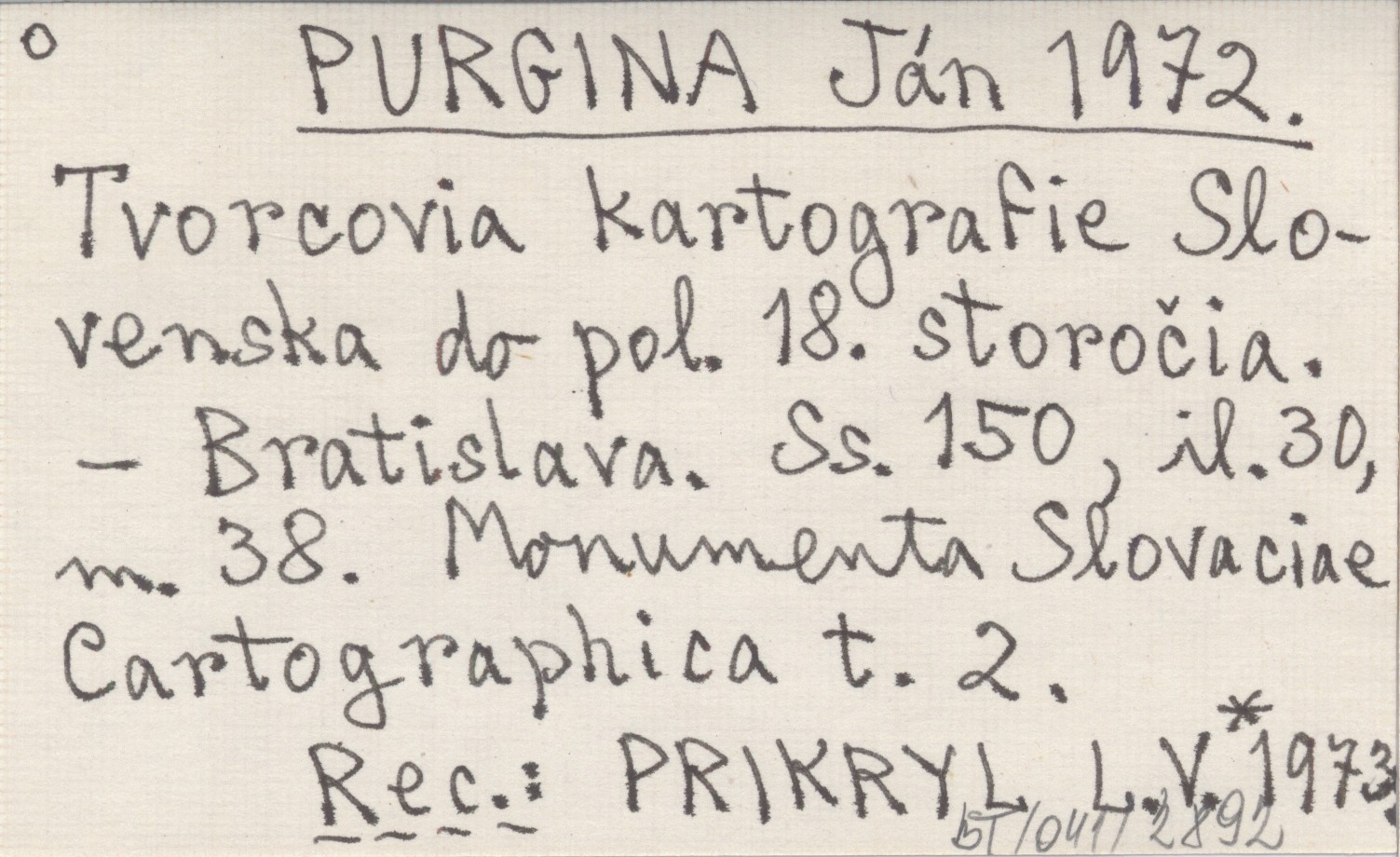 PURGINA Ján 1972 Tvorcovia kartografie Slovenska do pol. 18. storočia.