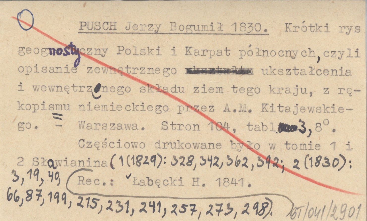 PUSCH Jerzy Bogumił 1830 Krótki rys geognostyczny Polski i Karpat Północnych czyli Opisanie zewnętrznego ukształcenia i wewnętrznego składu ziemi tego Kraju. Tłum. z niem.: A. M. Kitajewski.