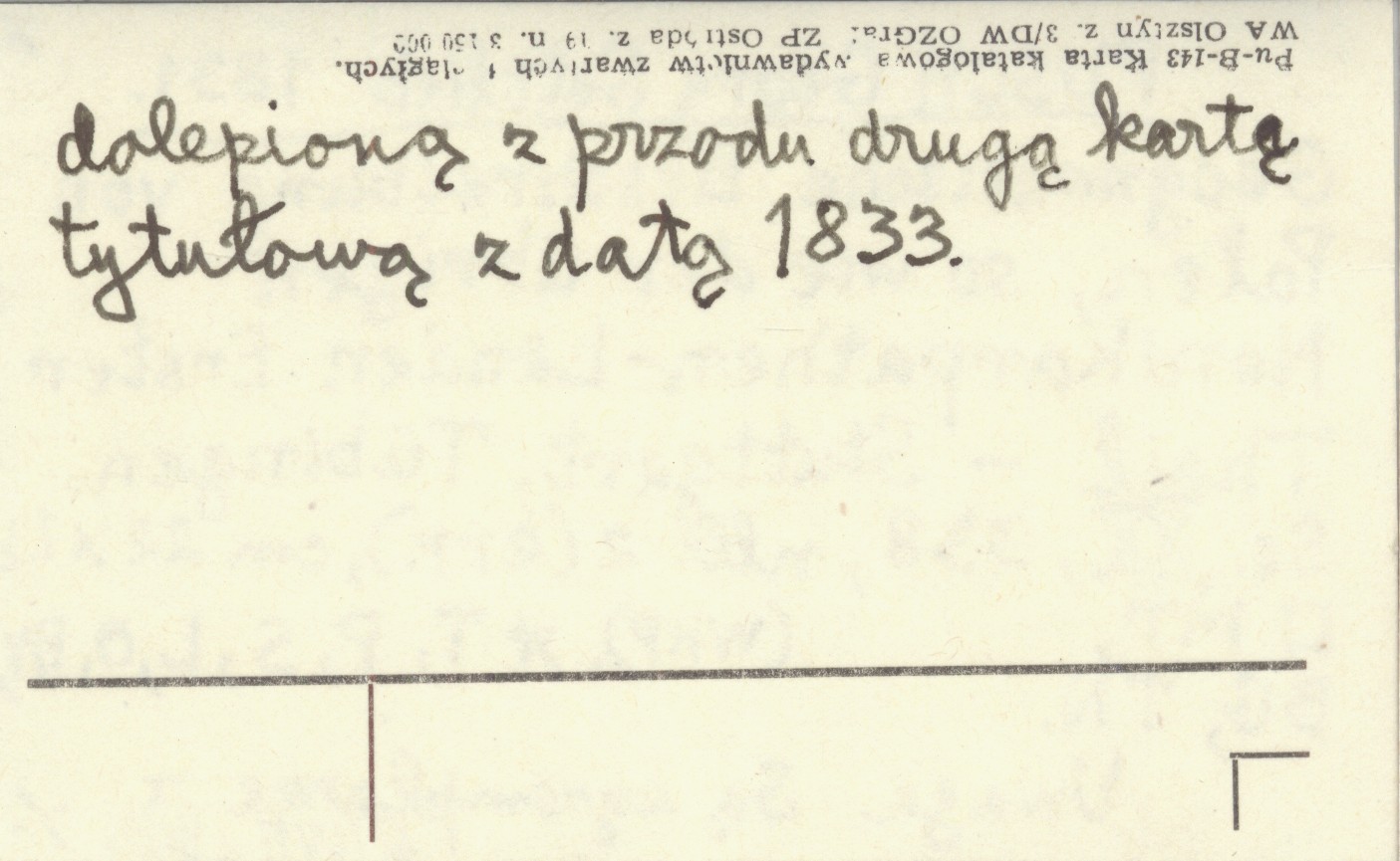 Stuttgart ; Tübingen ; , XX, 338 s., [2] err., 22x13 cm. Uwaga. Są egzemplarze z dolepioną z przodu drugą kartą tytułową z datą 1833.