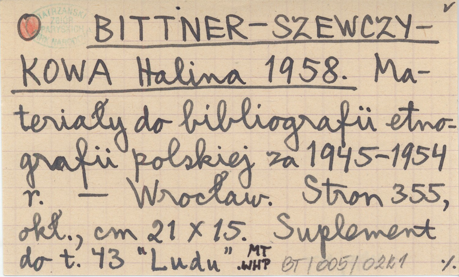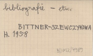 BITTNER-SZEWCZYKOWA Halina 1958 Materiały do bibliografii etnografii polskiej za 1945-1954 r.