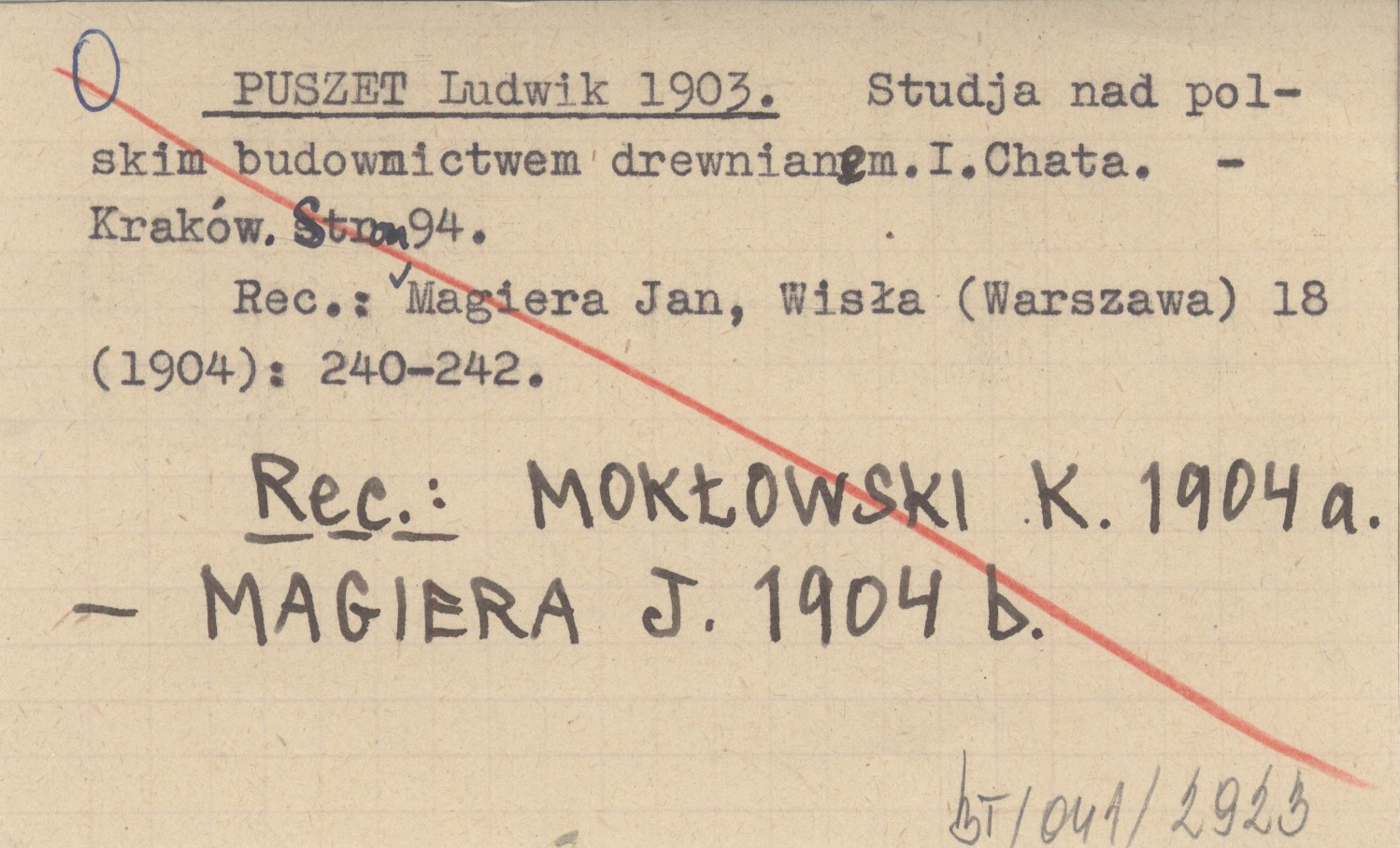 Kraków , 94 s. REC: MAGIERA Jan, Wisła (Warszawa) 18 (1904): 240-242 ; MOKŁOWSKI K. 1904 a ; MAGIERA J. 1904 b ;