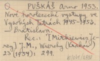 PUŠKÁŠ Arno 1953 Nové horolezecké vystupy ve Vysokých Tatrách 1945-1953.