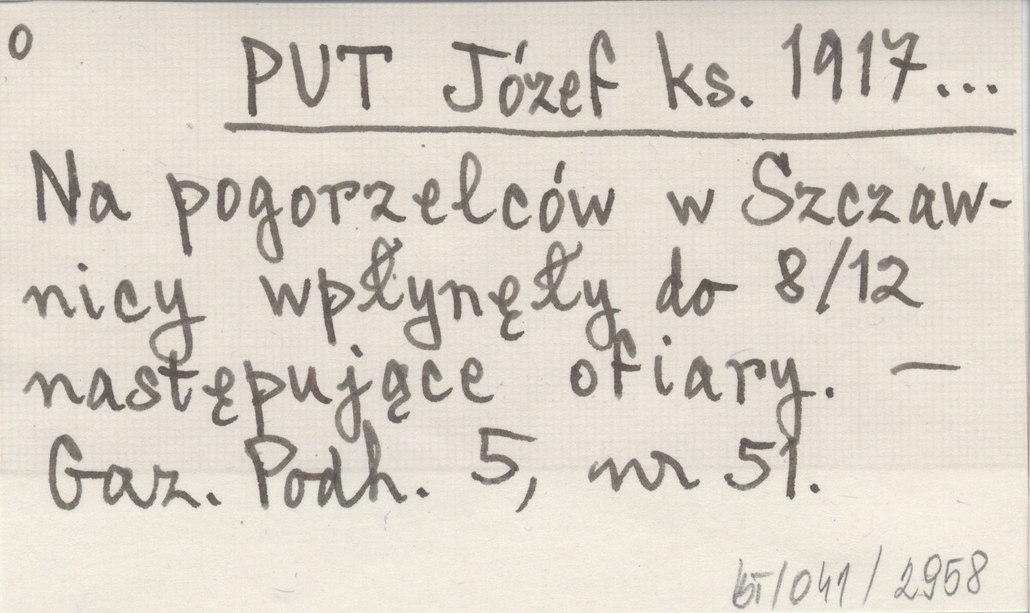 PUT Józef ks. Na pogorzelców w Szczawnicy wpłynęły do 8/12 następujące ofiary.