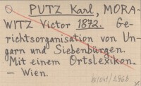 PUTZ Karl MORAWITZ, Victor. ; 1872 Gerichtsorganisation von Ungarn und Siebenbürgen. Mit einem Ortslexikon.