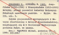 PYROŻENKO P. SIWERŚKA, W. ; 1965 Josyfińska (1785-1788) i Francyskańska (1819-1820) Metryki, perszi pozemelni kadastry Hałaczyzny. Pokażczyk nasełenych punktiw.
