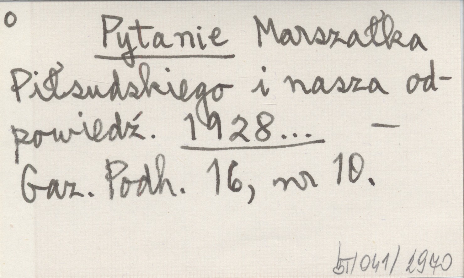 Pytanie Marszałka Piłsudskiego i nasza odpowiedź. 1928...