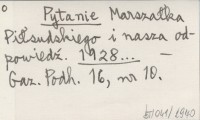 Pytanie Marszałka Piłsudskiego i nasza odpowiedź. 1928...
