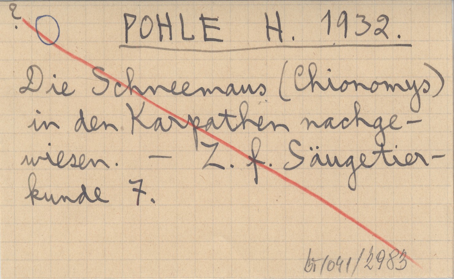 POHLE H. 1932 Die Schneemaus (Chionomys) in den Karpathen nachgewiesen.