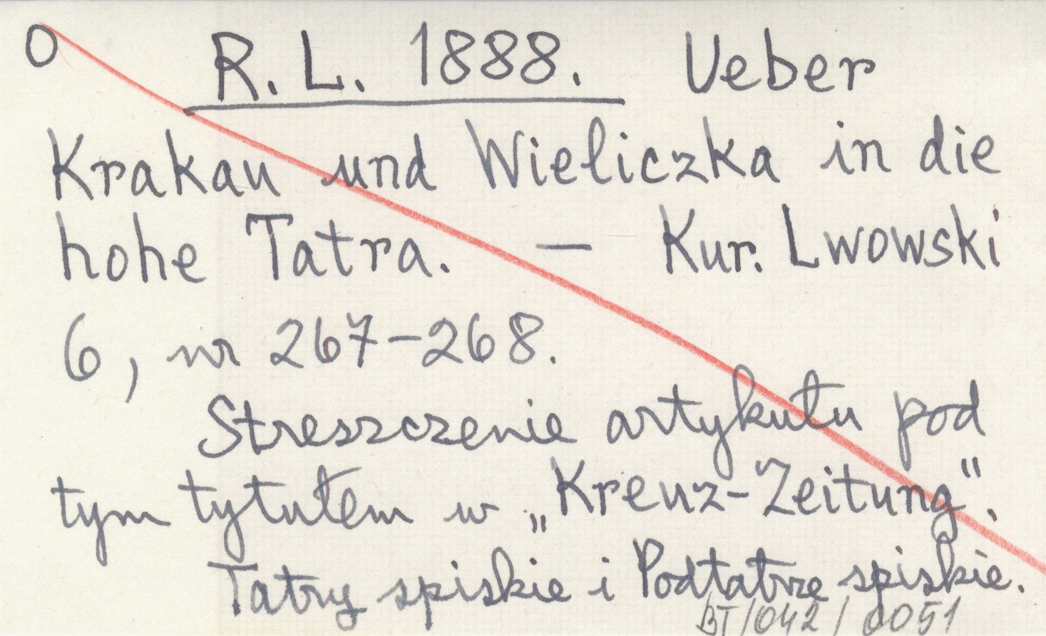R. L. 1888 Ueber Krakau und Wieliczka in die hohe Tatra.