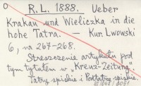 R. L. 1888 Ueber Krakau und Wieliczka in die hohe Tatra.