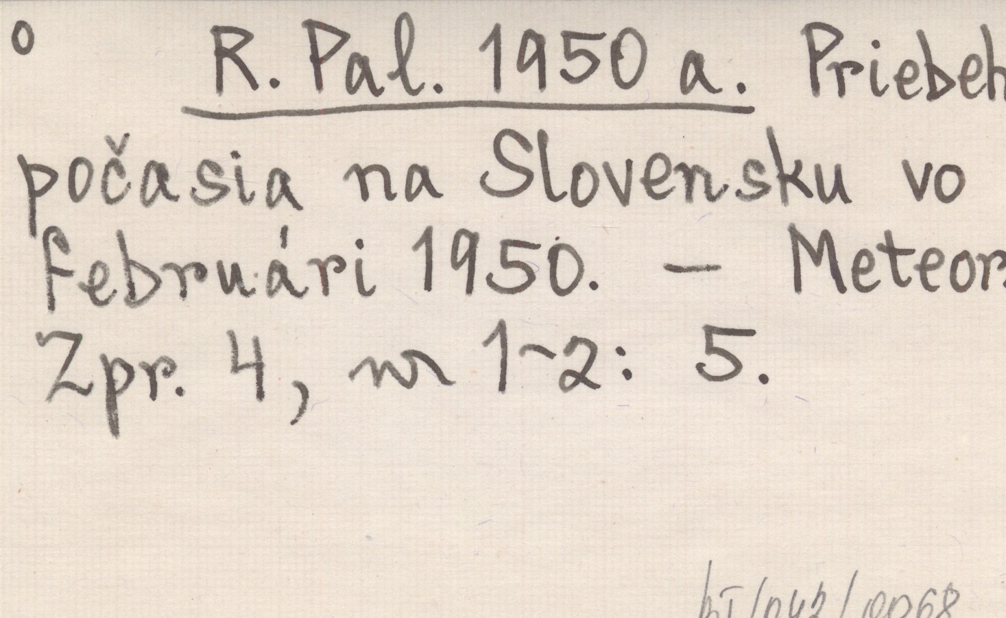 R. Pal. 1950 a Priebeh počasia na Slovensku vo februári 1950.