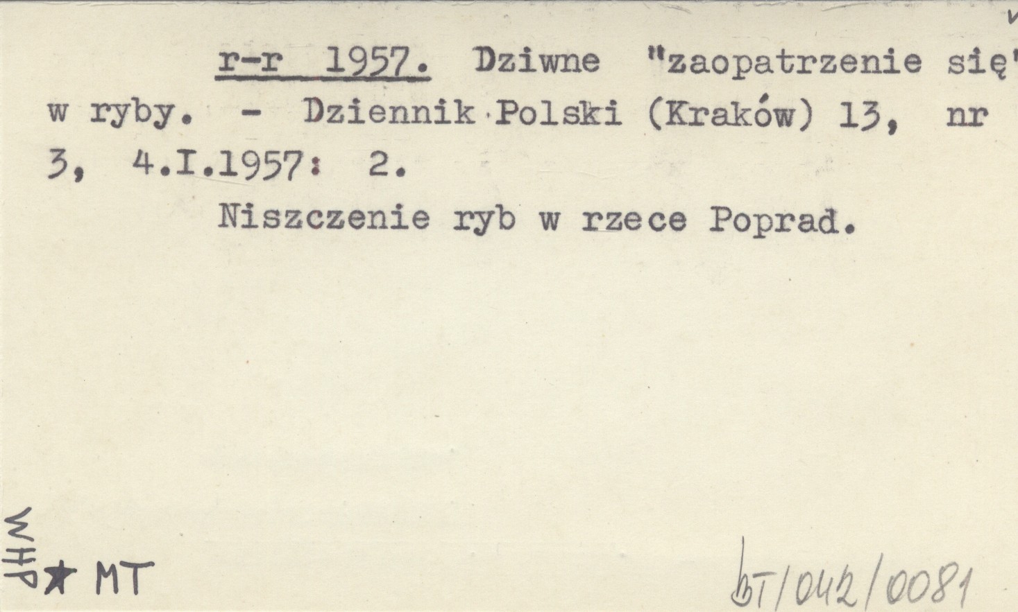 Dziennik Polski (Kraków) , 13, nr 3 (4 I 1957): 2. Niszczenie ryb w rzece Poprad.