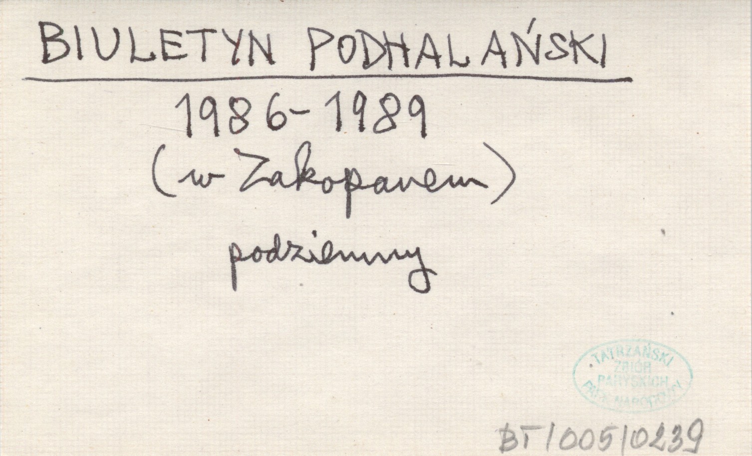 Projekt Digitalizacja fiszek z Bibliografią Tatr i Podtatrza Witolda Henryka Paryskiego jest finansowany ze środków Ministra Kultury i Dziedzictwa Narodowego oraz Tatrzańskiego Parku Narodowego.