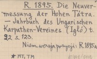 R. 1895 Die Neuvermessung der Hohen Tátra.