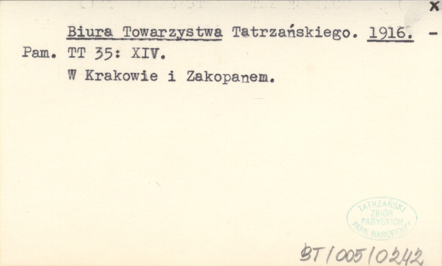 Pamiętnik Towarzystwa Tatrzańskiego, 35: XIV. W Krakowie i Zakopanem.