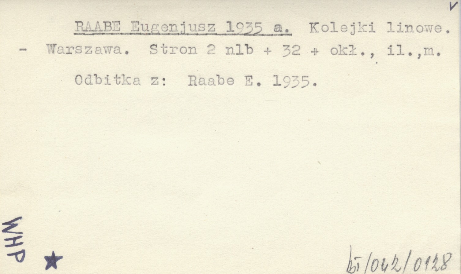 Warszawa , [2], 32 s., okł., il., mapa. Odbitka z: RAABE E. 1935.