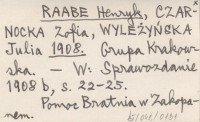 RAABE Henryk CZARNOCKA, Zofia. ; WYLEŻYŃSKA, Julia. ; 1908 Grupa Krakowska.