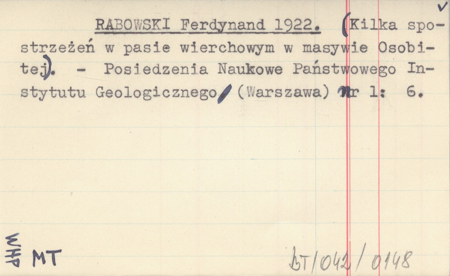 RABOWSKI Ferdynand 1922 (Kilka spostrzeżeń w pasie wierchowym w masywie Osobitej).